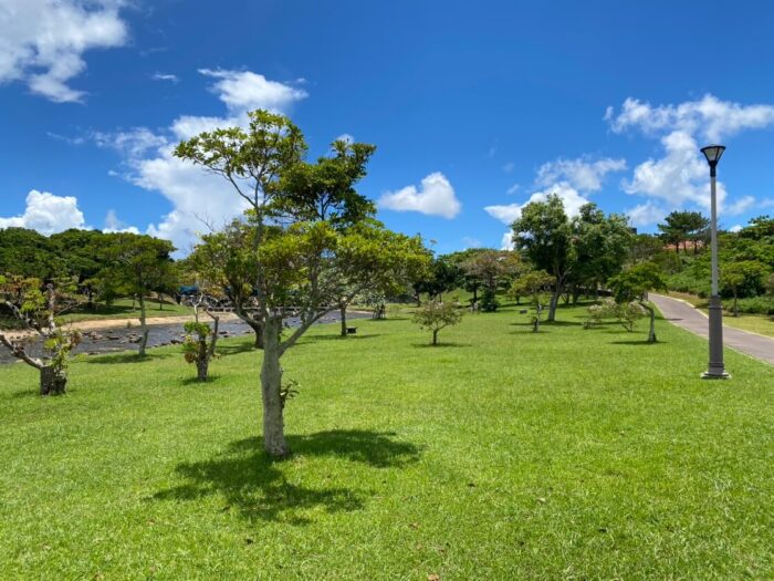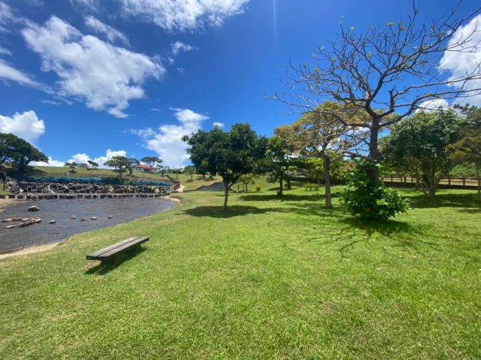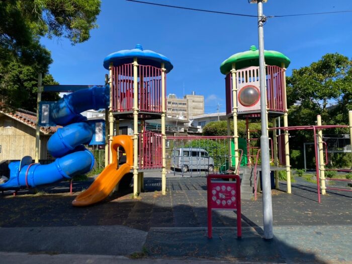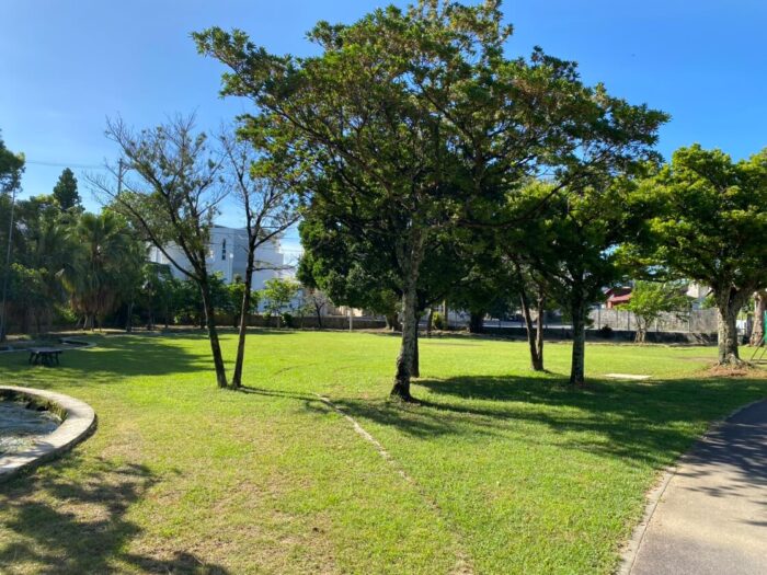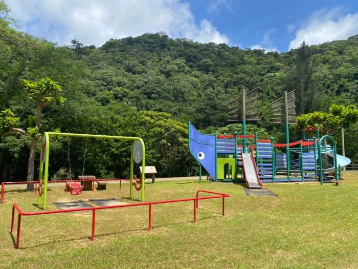 金武町のウッカガー(金武大川)の向かいにあり、いつも地元のこども達で賑わっている公園です。
