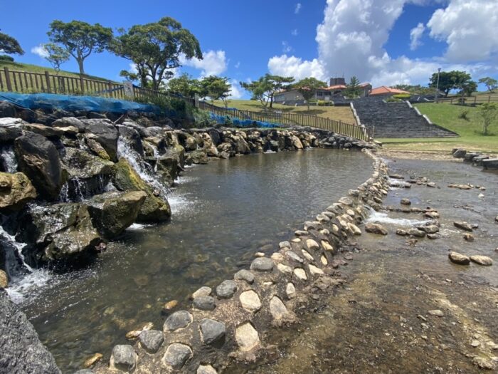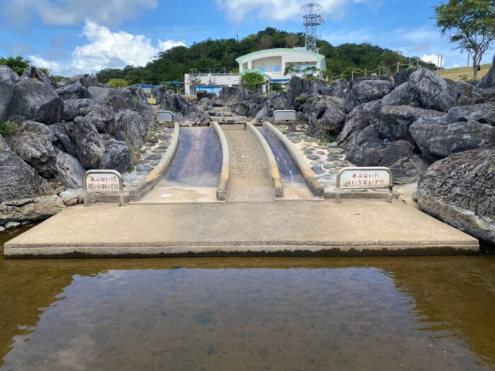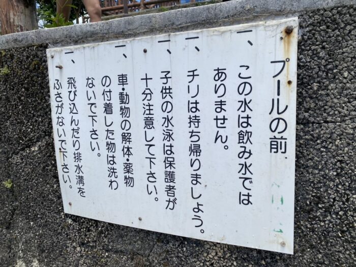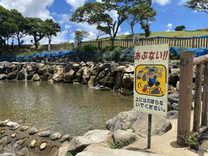 また、ここの川の上に遊泳禁止という看板がありました。しかし、糸満市のHPでも「水量豊かで子供たちの格好の水遊びスポット」と紹介されており、こちらの遊び場の写真が使用されています。何を調べても遊泳禁止という情報は出てきませんでした。何かルールなど知っている方がいらっしゃいましたらぜひ教えてください♪