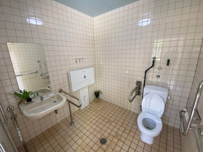 トイレは公園隣の「泉の広場」というところにありました。徒歩1~2分くらいの場所にあります。