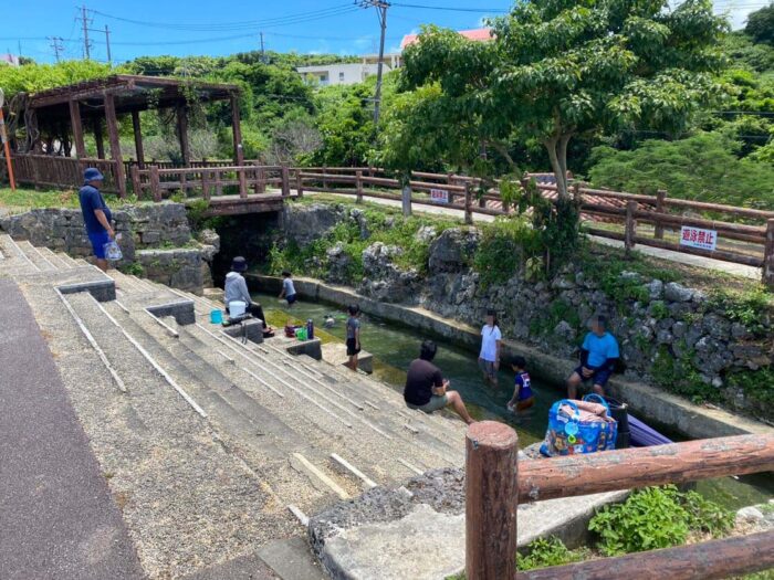 公園の隣にはウッカガー(金武大川)という共同井泉があり、「長寿の泉」とも呼ばれています。