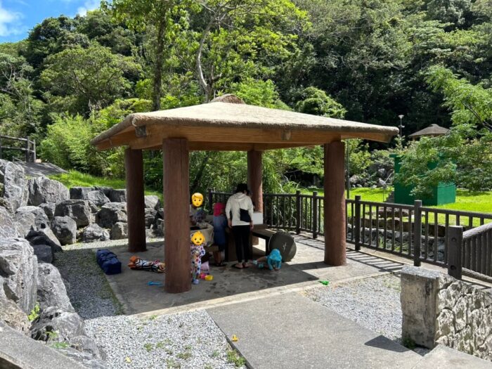 プールの隣には東屋もあり、みなさんここに荷物を置いたり休憩などしていました。