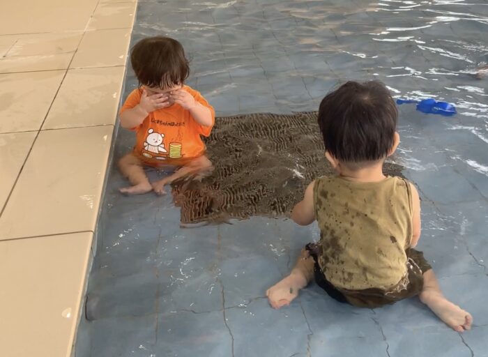 プールの下には手足洗い場もあるので、汚れても綺麗に洗い流すことができます。