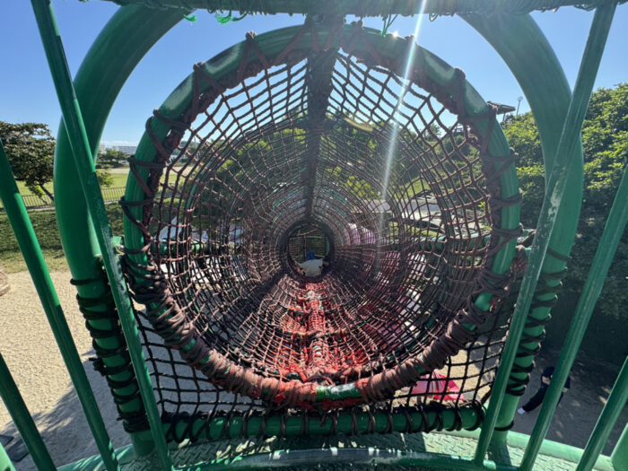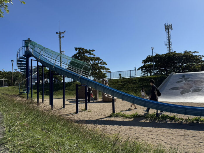 近年、新しい遊具が設置されたエリアもあるそうですが、そちらは改めて取材させていただくとして、今回は昔から親しまれている“アスレチック感満載の大きなすべり台”があるエリアをご紹介します。