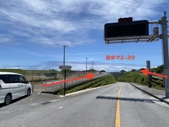 駐車場は無いため、陸上自衛隊知念分屯地の入口付近を目印に路上駐車となります。