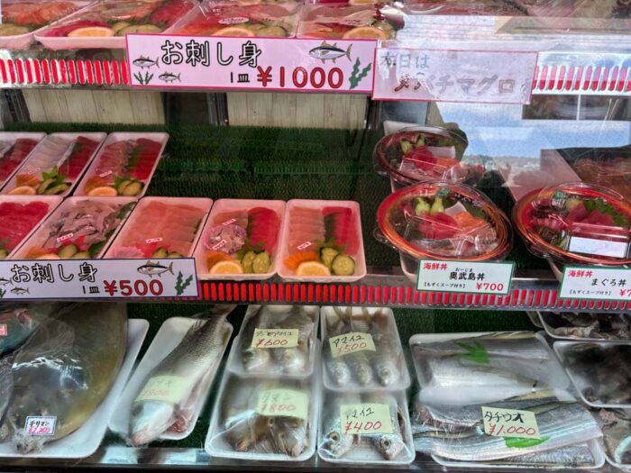 お持ち帰りできるお魚はもちろん、その場で食べることができるお刺身やお味噌汁、海鮮丼なども充実しています。
