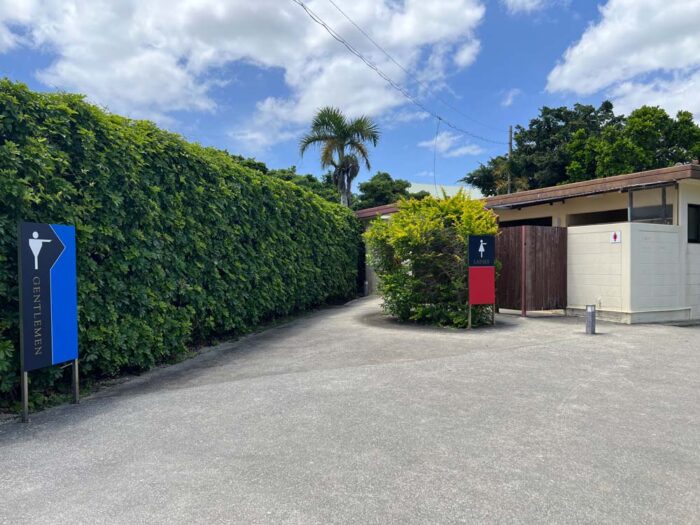 駐車場から施設に行く道中にトイレあります