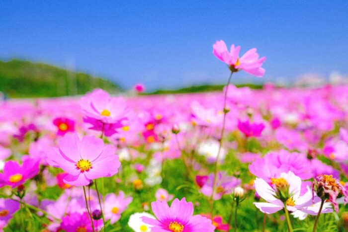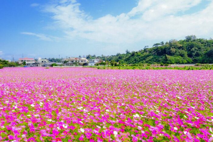 一般的に秋に咲くイメージですが、沖縄のコスモスは1月から2月が見頃になります。