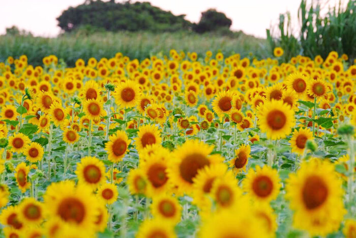 黄色の花がキラキラ輝き、畑一面に咲きほこる景色は圧巻ですね。
