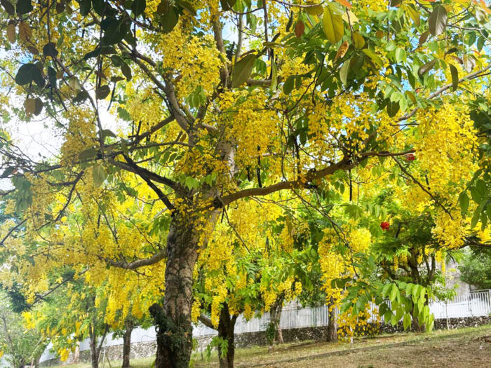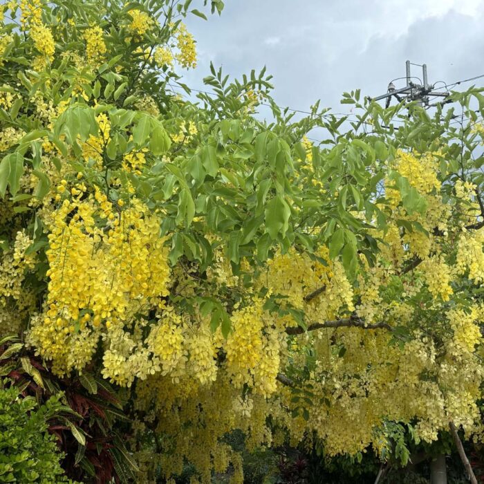 満開になると鮮やかな黄色の小花が垂れ下がり、黄金の雨そのものです。
