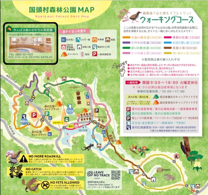 公園内にはやんばる森のおもちゃ美術館以外にも自然散策路やバードウォッチングスポットがあり、自然観察を楽しむこともできます。