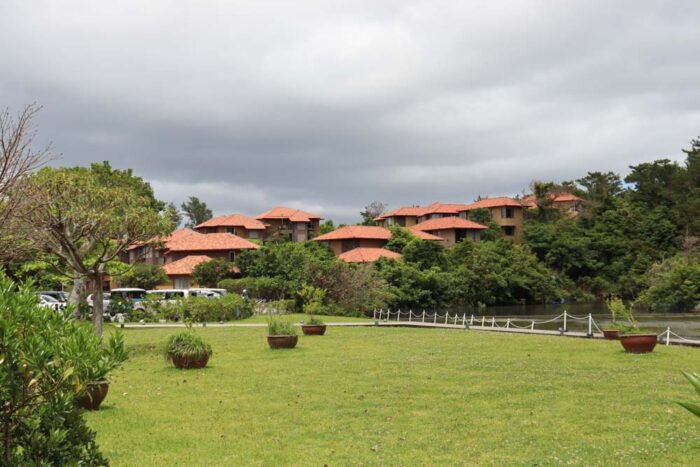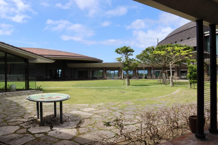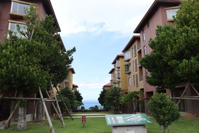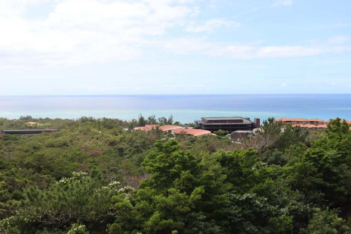 広大な敷地に木々が生い茂り、展望台からの眺めは絶景で、海と山を見渡し、天気が良ければ沖縄本島北部の景色を一望できます。