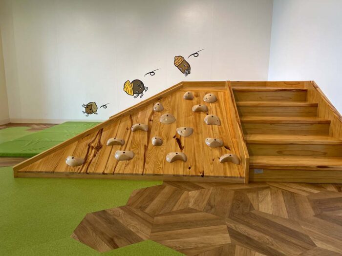 木で作られた遊具ばかりなので心地よく、自然を感じられる気がして外が雨でも楽しく遊べる施設だなと思いました。
