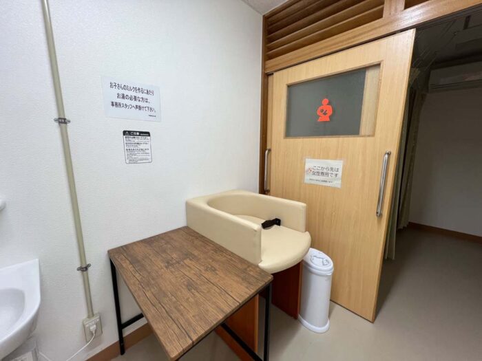 授乳室とおむつ替えシートも設置があるので、小さいお子様連れでも安心です。