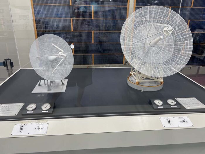 展示室以外に、沖縄宇宙通信所パラボラアンテナ施設内には直径18メートルと10メートルのパラボラアンテナを有する追跡管制局2式が設置されています。
