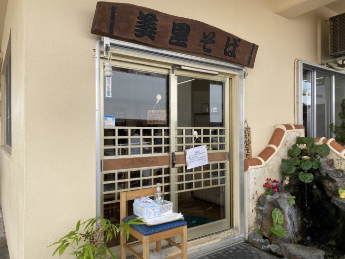 黄色い「美里そば」のノボリが目印