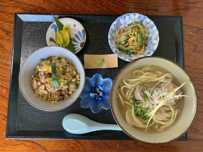 やんばる今帰仁村にある、白い瓦屋根の沖縄古民家が目印の今帰仁そば。