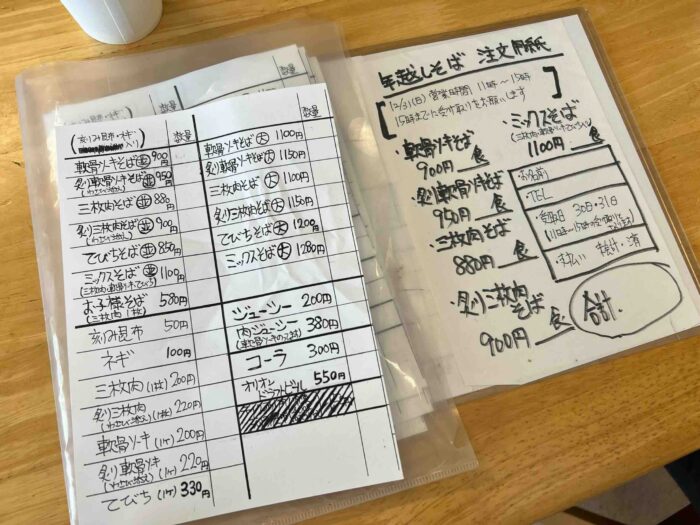スープは1種類で、おそばは4種類から選ぶことができます。