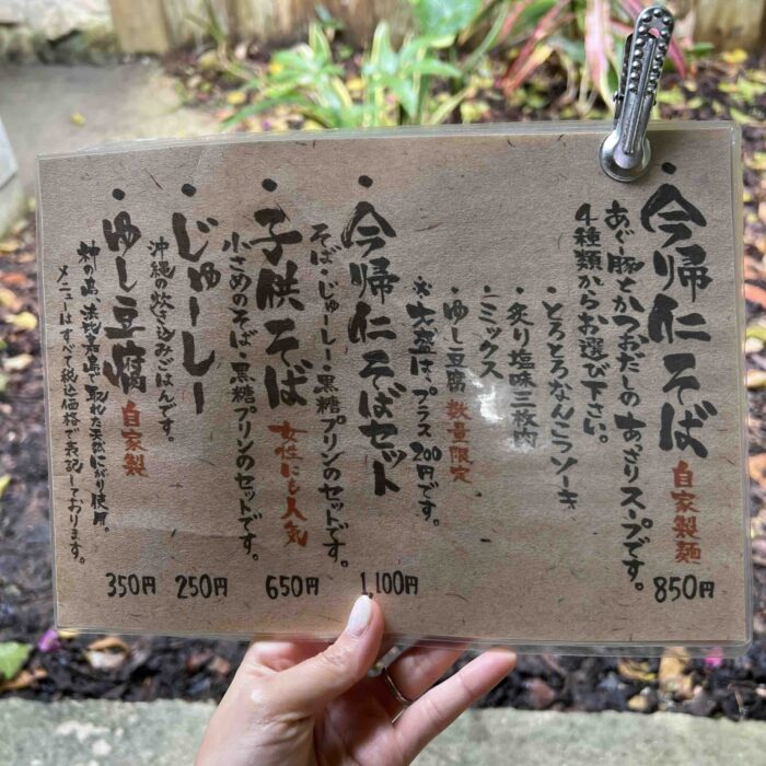ふく木に囲まれた沖縄時間を感じられる「今帰仁そば」