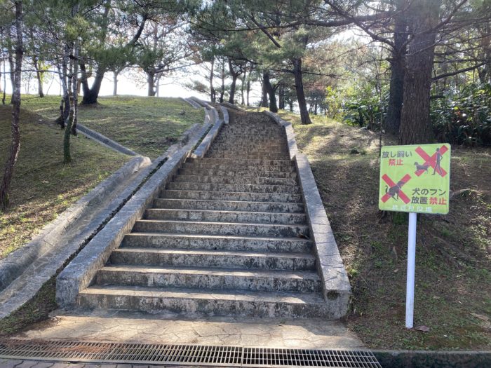 駐車場したらすぐ近くに階段があるので、登って道なりにずっと歩きます。