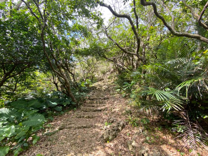 木が生い茂り、階段もゴツゴツしているので足元に注意しながら進みます。