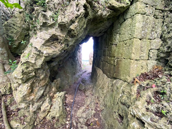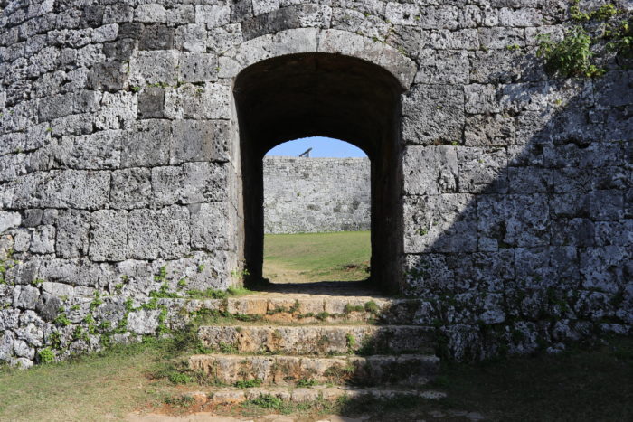 座喜味城跡の見どころとして、沖縄に現存する中で最も古い石造りの「二の郭」のアーチ門。強度を高めるため、真ん中にクサビ石があるのが特徴らしいです♪