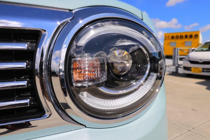 ワゴンRスマイルのフロントフェイスは丸目のヘッドランプが特徴で、可愛く愛着が感じられる雰囲気となっています。
