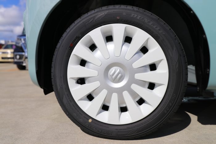 ホイールは2トーンのホイールキャップが採用されたスチールホイールで、立体的なデザインが特徴です。