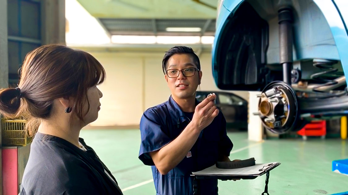 お車の状態を整備士と一緒に確認しながら、分かりやすい言葉でご提案、作業をすすめるため安心してお任せられます。