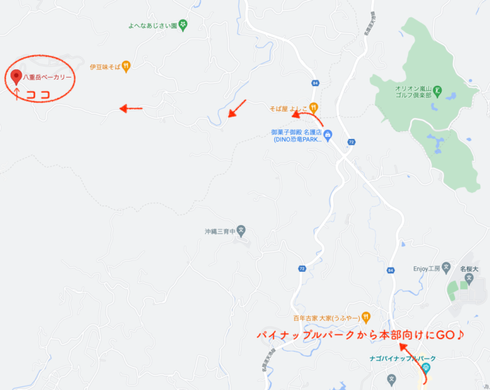 山の中(八重岳)をクネクネ進んでいくので、口頭では説明できません…