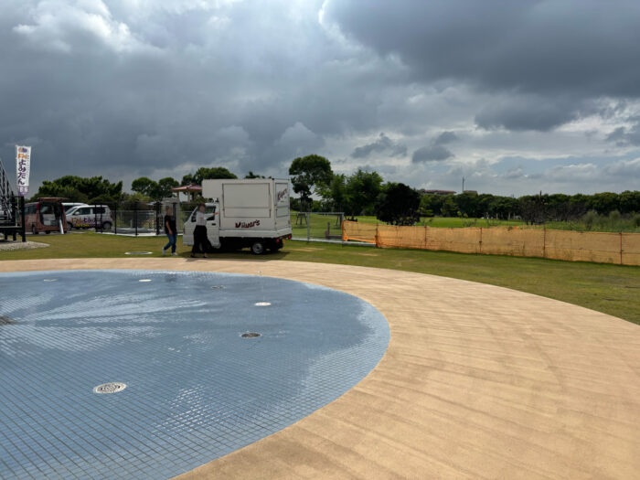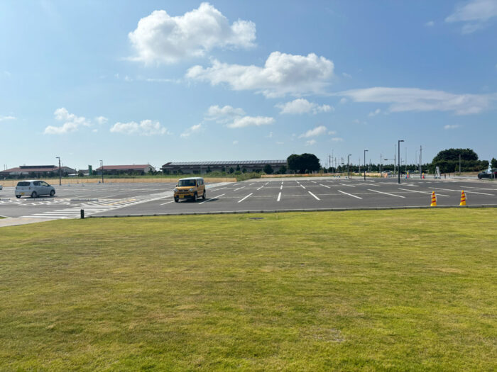 まだオープン前でしたが、キッチンカーも来ていました。ゆったり広々した駐車場。