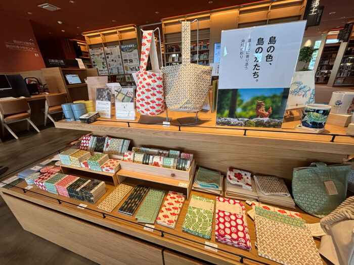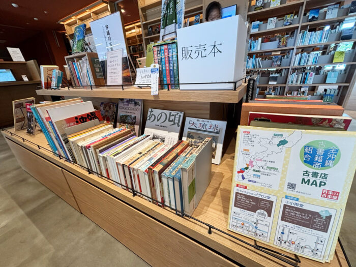 ポップアップストアも併設されています。沖縄関係の古書、読谷のやちむんなどが販売されていました。