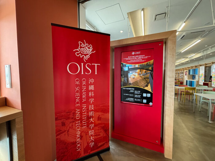 「OISTサイエンススタジオ」が設置されています。OIST(沖縄科学技術大学院大学/恩納村)の研究を紹介する展示やセミナー、交流イベントなど科学を身近に感じられるような目的で、村内外だれでも利用可能です。