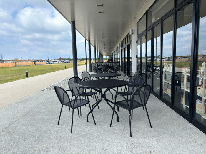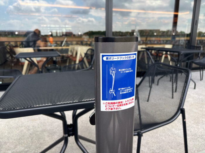 館外のテラス席。愛犬家にうれしいリードフック付きでワンチャンと一緒にゆったり過ごせます。